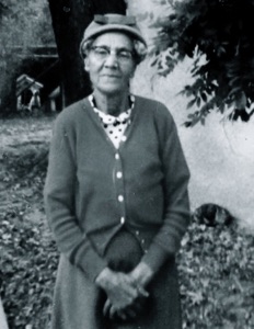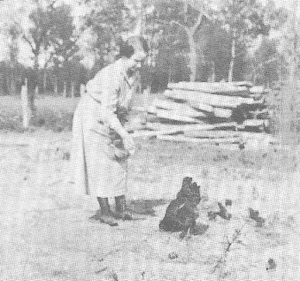 Mom Novosel feeds her chickens at her home where Riverbay and Hampton meet, 1920.