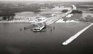 Ferry boat dock, Sandy Point, 1951.
